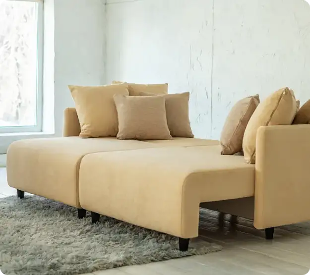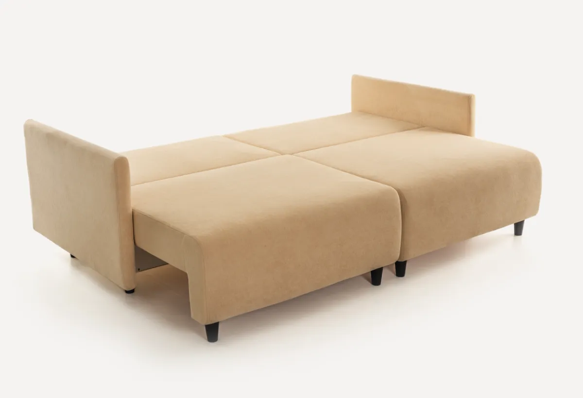 Качество, которое чувствуетсяДиван выполнен из прочных материалов: каркас из сосновых брусков и ортопедическая пружинная основа гарантируют долговечность и комфорт. Обивка из прочного и приятного на ощупь материала не потеряет форму даже через годы использования. Подушки, наполненные гипоаллергенным материалом, не сминаются и не теряют форму. А ещё их можно вынуть из чехлов и постирать — это важно, когда в доме есть дети или животные. Все детали продуманы: от надёжного механизма трансформации до лаконичного дизайна без лишних деталей.